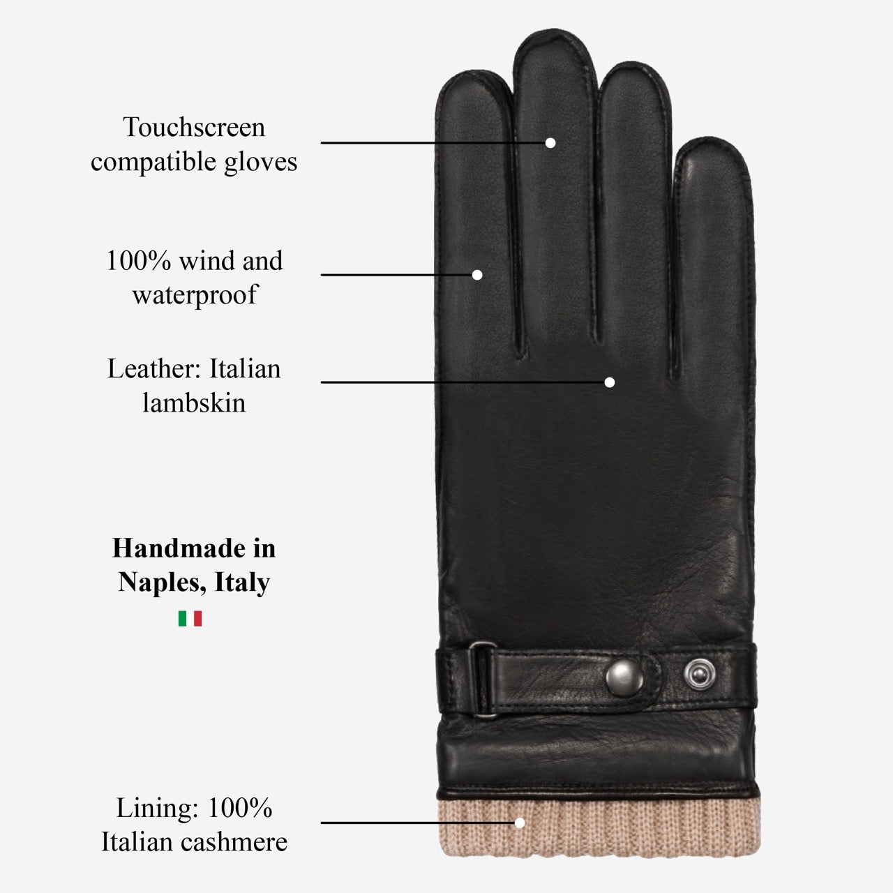 Alberto (zwart) - Italiaanse lamsleren handschoenen met kasjmier voering & touchscreen functie