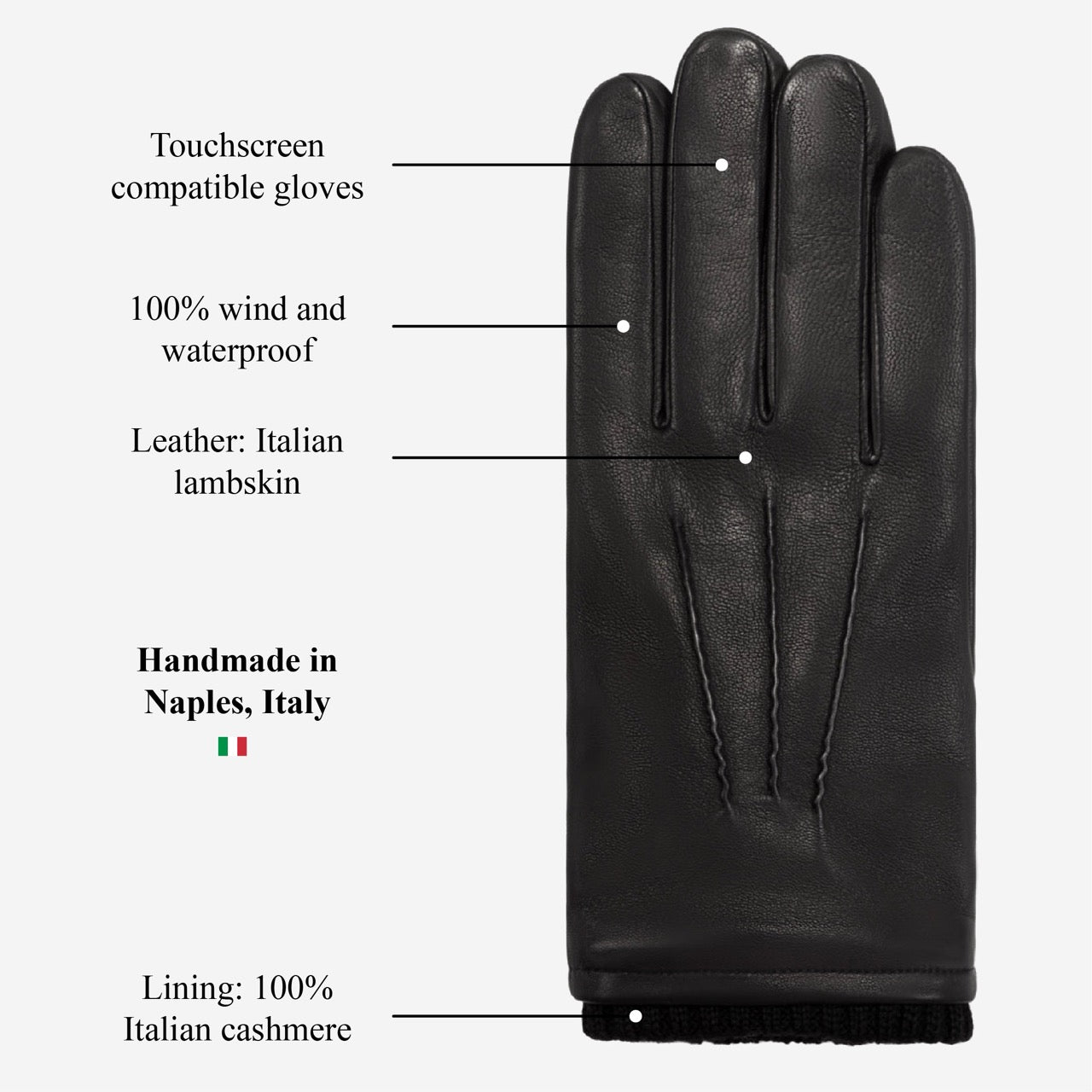 Oliviero (zwart) – Italiaanse lamsleren handschoenen met kasjmiervoering en touchscreenfunctie